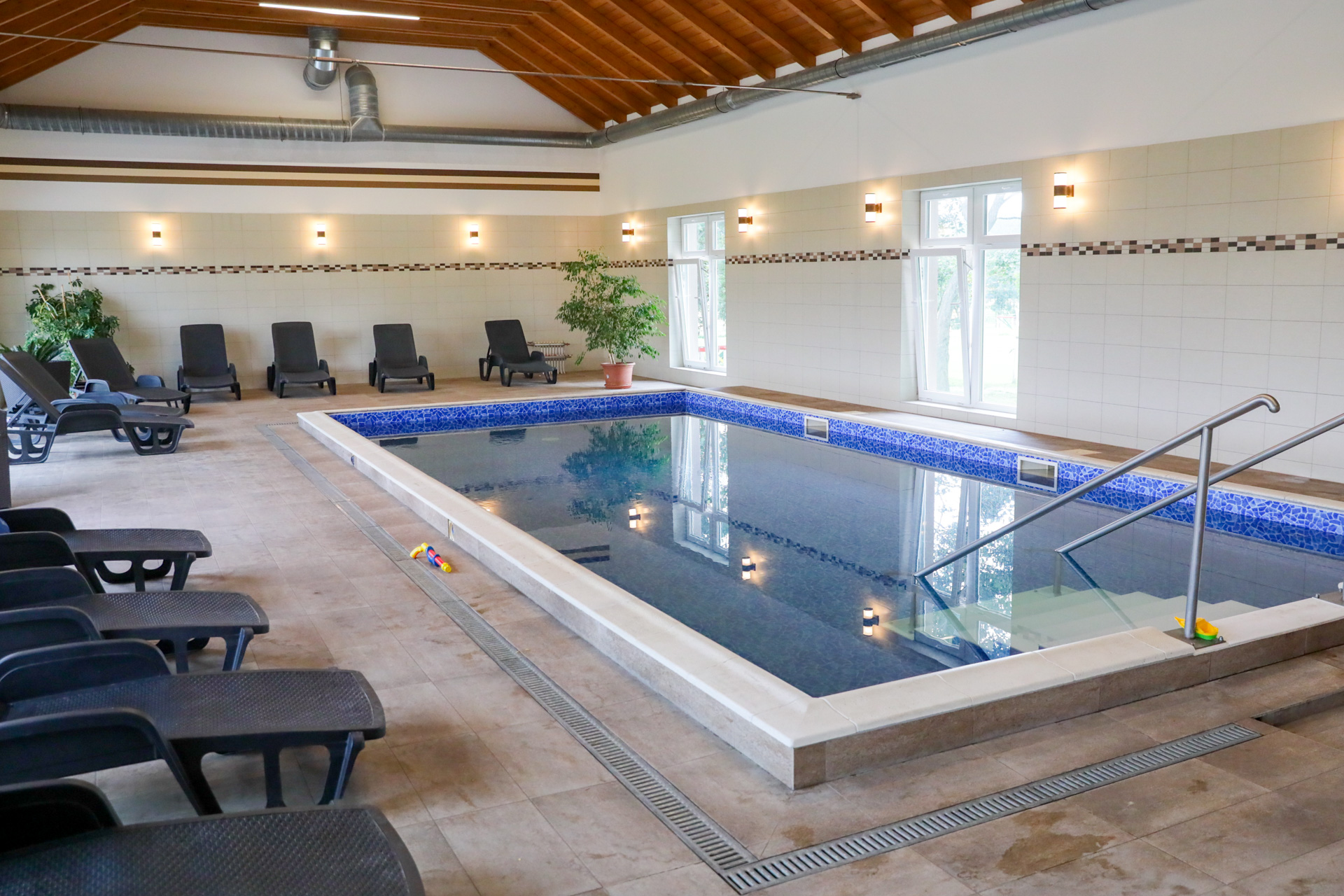 2021-ben megnyílt beltéri medencénk, mely azóta is vendégeink kedvence. 30-33 fok körüli hőmérséklete igazi kikapcsolódást biztosít a fárasztó napokon.