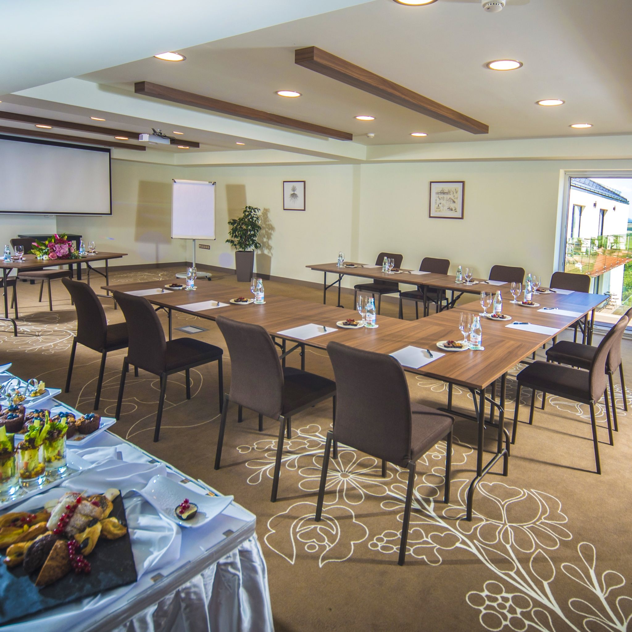 Az itt található 40 és 60 fős, klímás termek magas technikai felszereltséggel kiválóan alkalmasak rendezvények, továbbképzések, csapatépítő tréningek lebonyolításához.