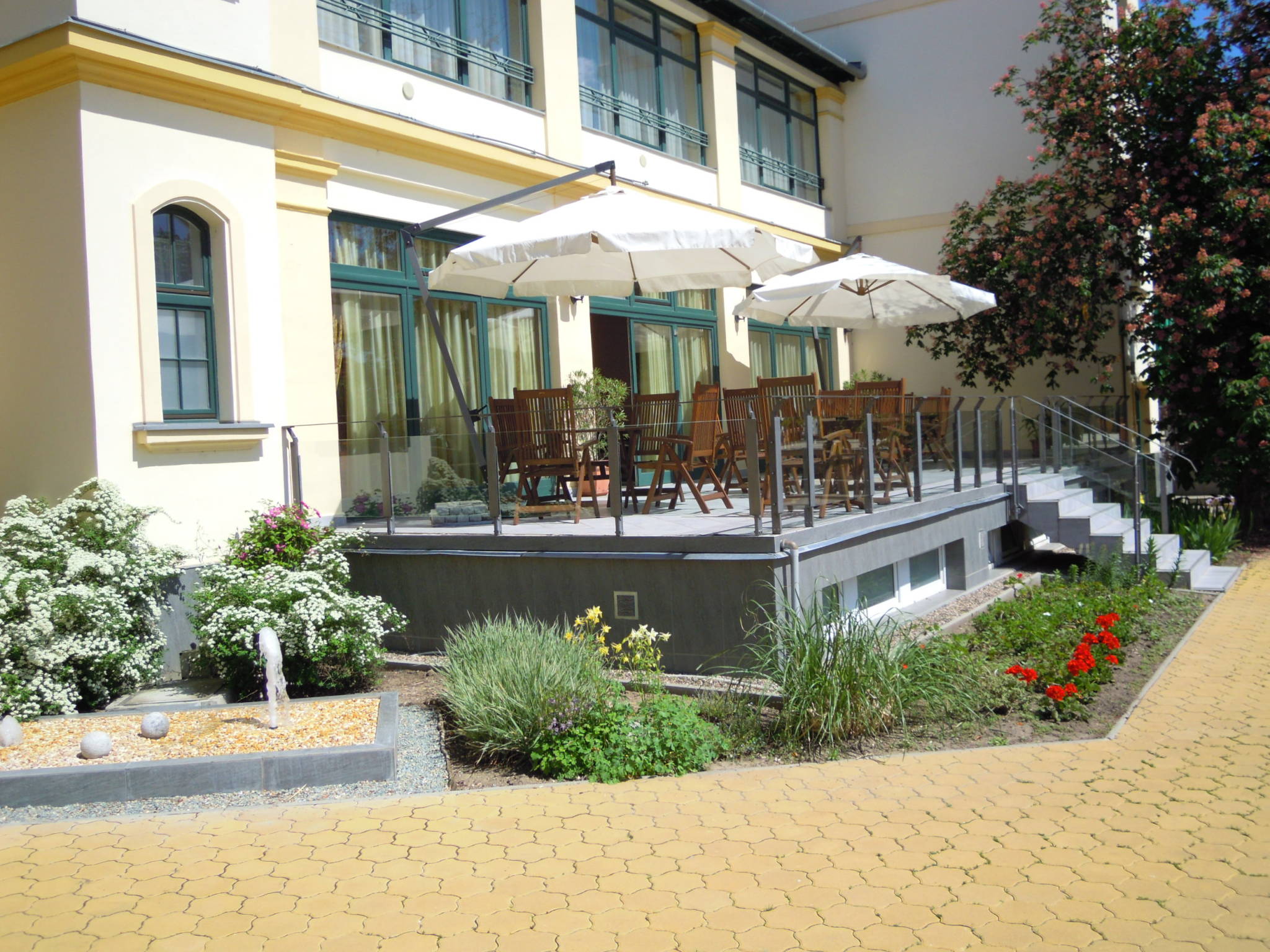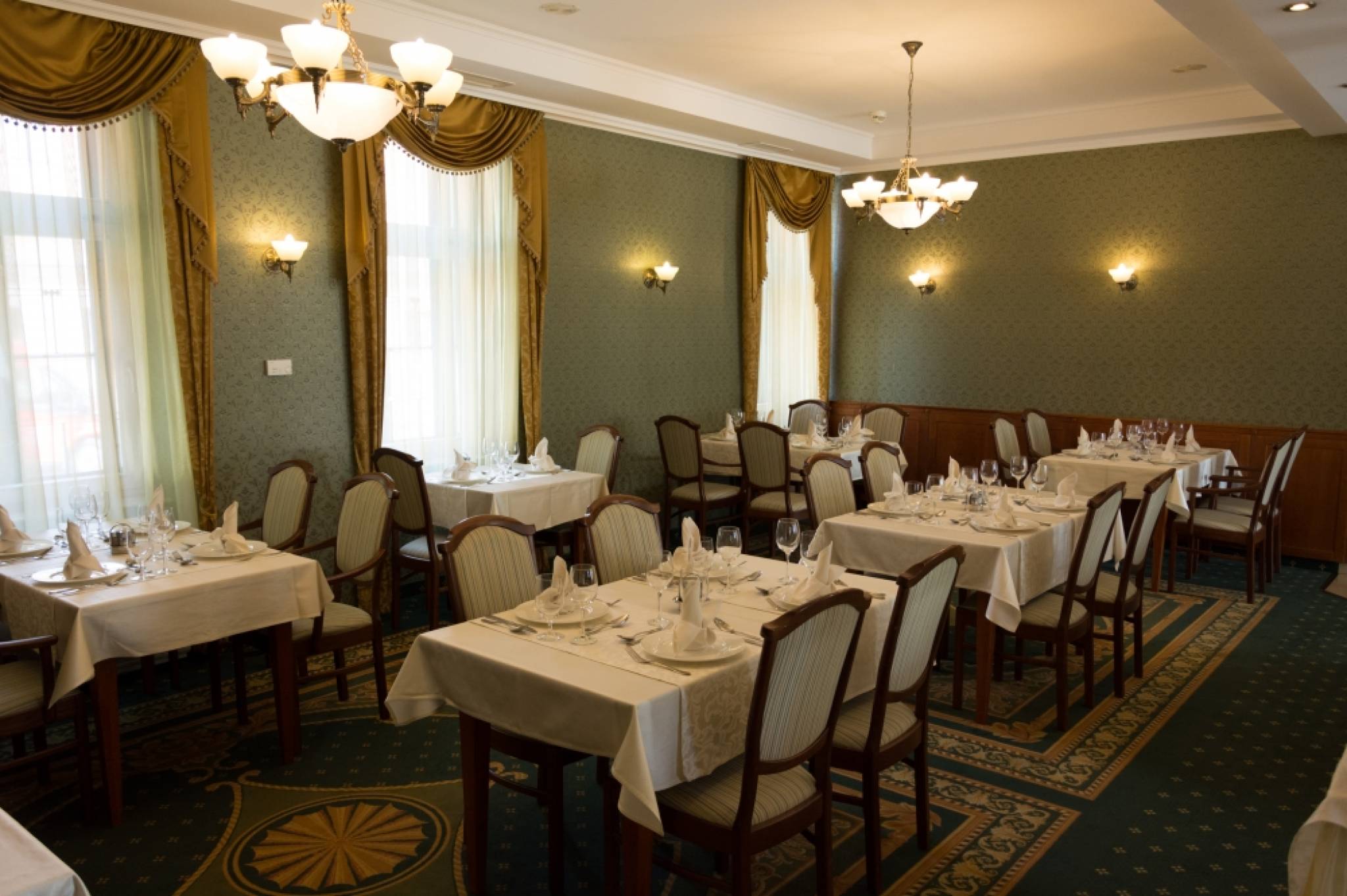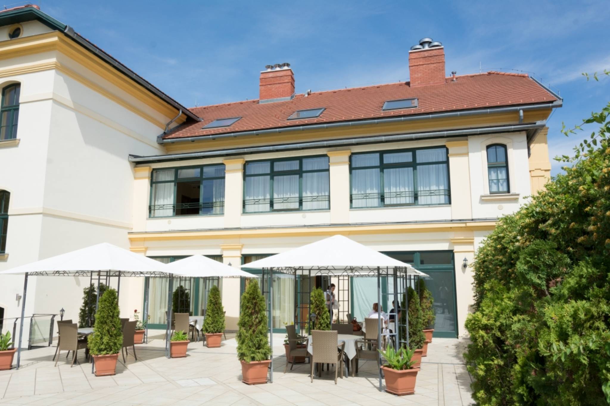 For culinary delights our guests are welcome in the Restaurant Almásy and the hotel bar, both adjoined by terraces offering magnificent views of the Gyula Castle. In our fairy-tale wellness centre guests shall find the ideal way relax and rejuvenate in the end of the day.