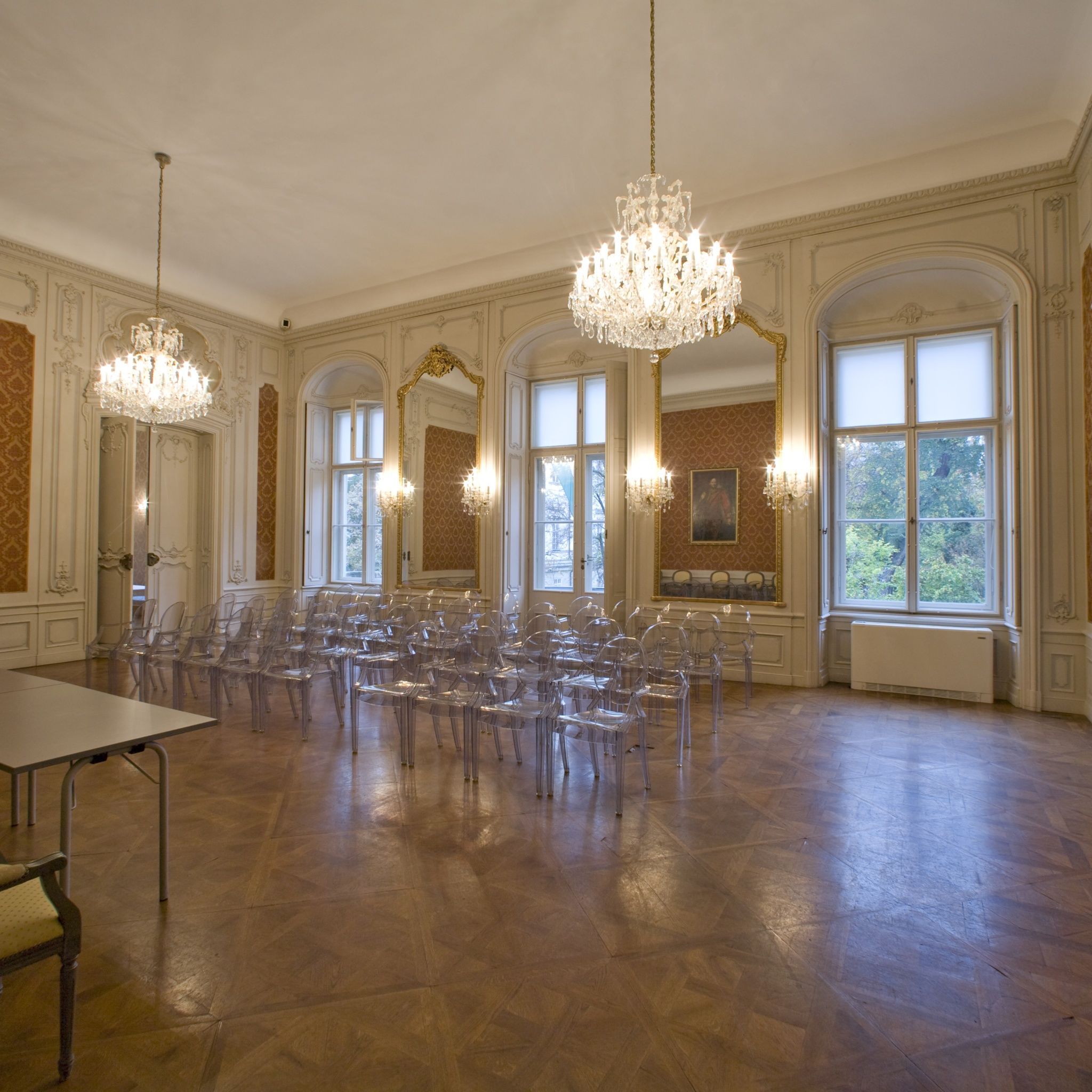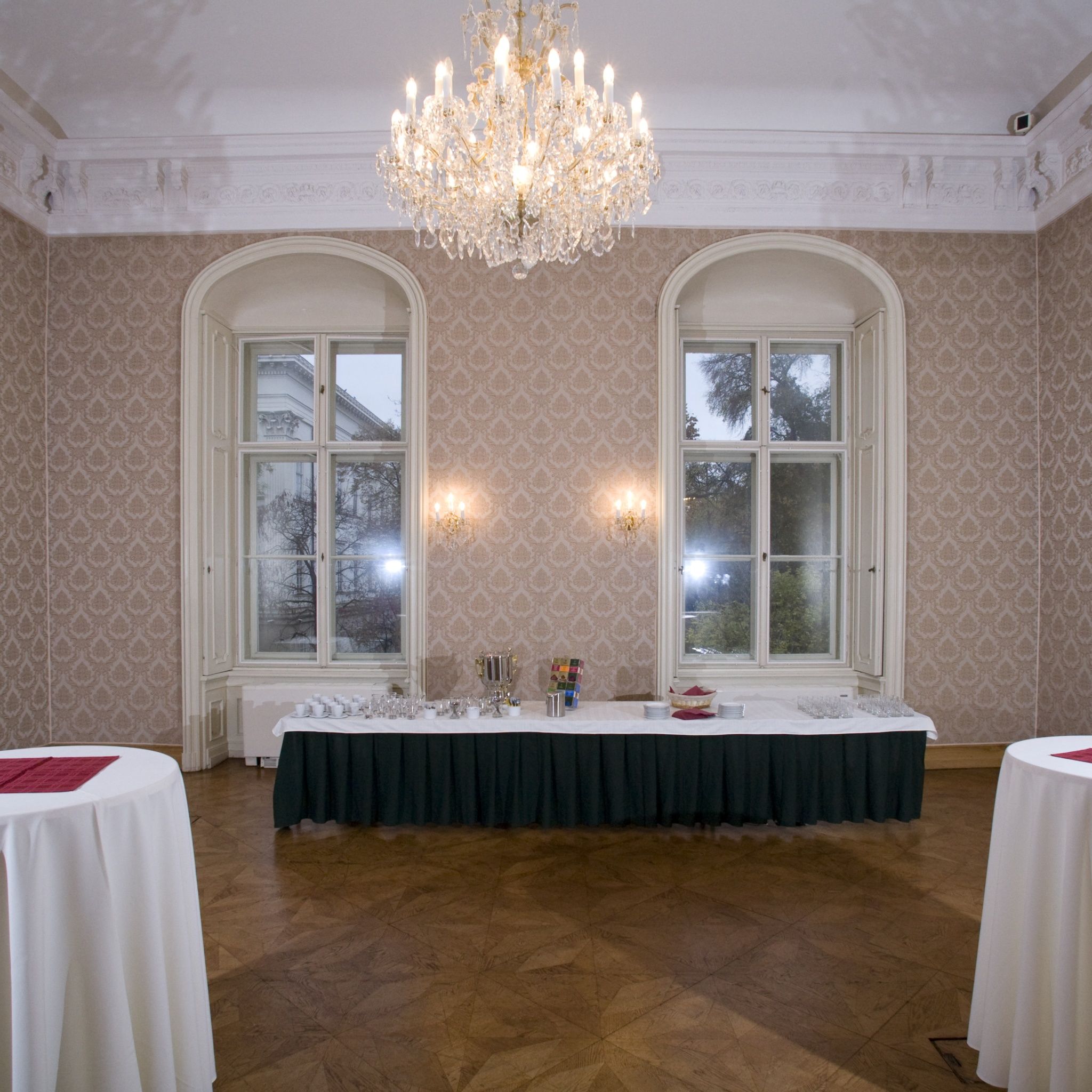 Although the Festetics Hall can be rented individually, it generally serves as a complementary hall. It has direct access to the “hinterland” that can be found by the banquet halls, consequently it is a preferred venue for standing receptions.