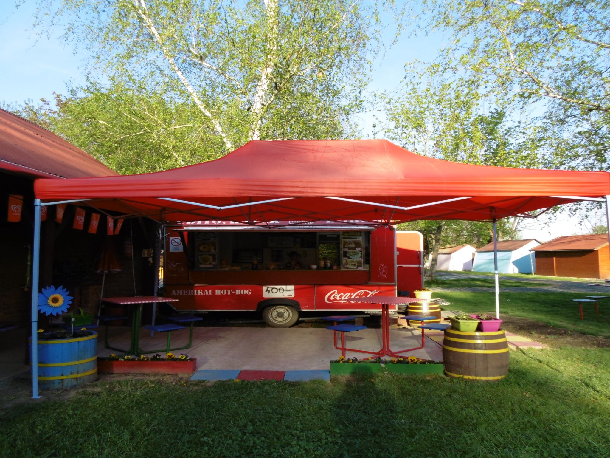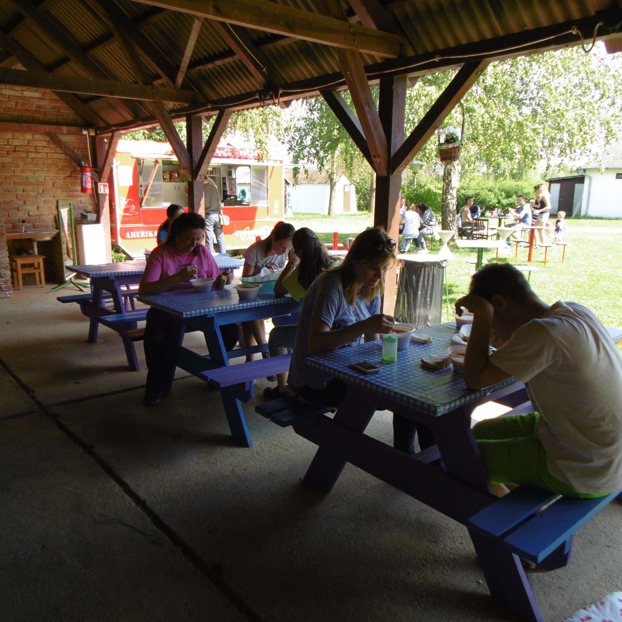 Igény esetén teljes ellátást biztosítunk. A kempingben üzemelő, kora reggeltől késő esti nyitvatartó büfében szintén lehetőség van étkezésre, folyamatosan bővül a kínálatunk. Hideg italok és kávé mindig kaphatók. Három kijelölt szalonnasütő helyünkön lehet grillezni, bográcsozni és persze szalonnát sütni, Bográcsot, állványt és grillrácsot adunk.