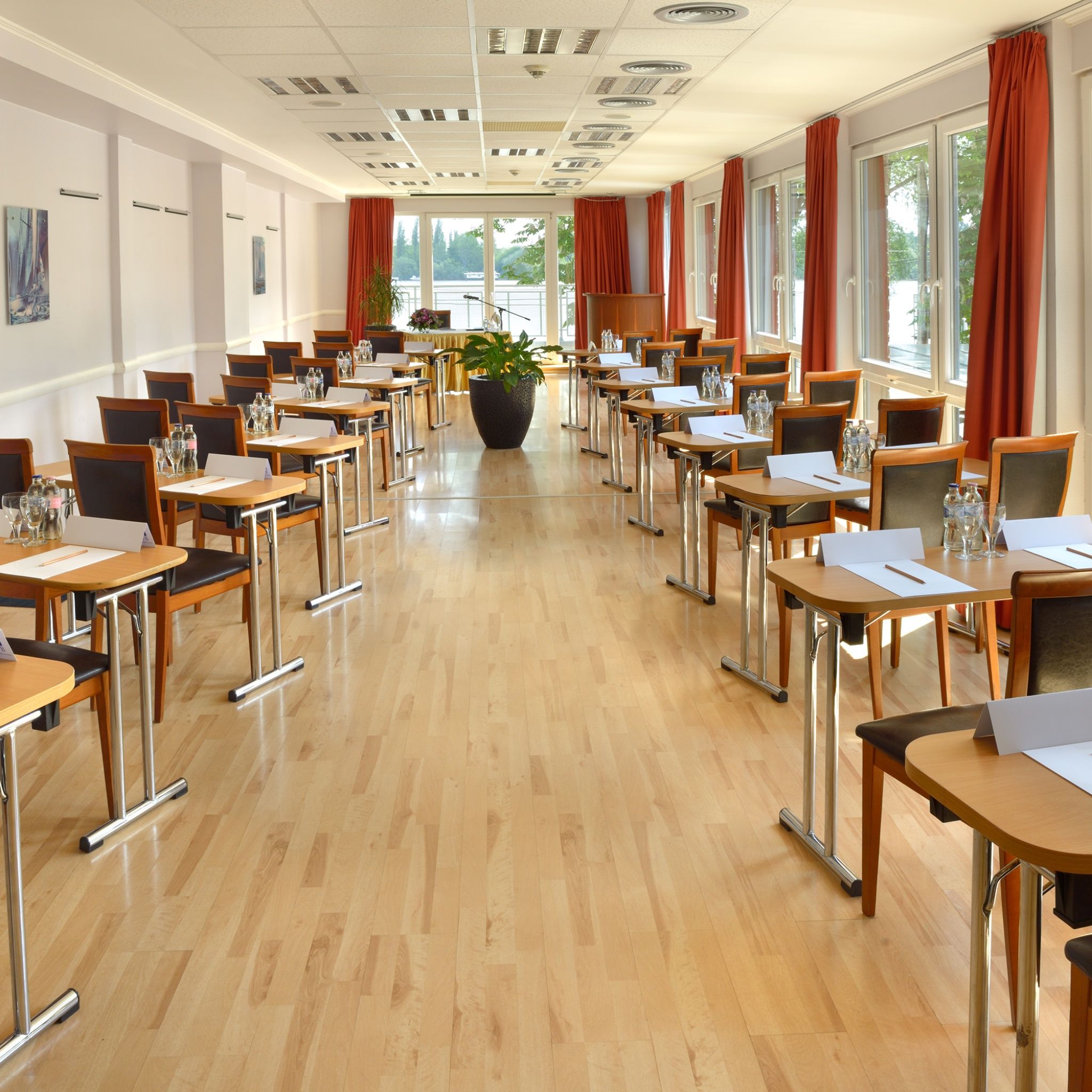 A szálloda Budapest szívében, a Római-part festői környezetében található, ideális választás mindazok számára, akik pihenésre, sportolásra, valamint testi és lelki felfrissülésre vágynak. A konferenciatermek ideális helyszínt kínálnak üzleti és tudományos események, találkozók, szemináriumok, képzések, tréningek lebonyolítására, emellett bankettek és egyéb nagyszabású rendezvények megtartására is alkalmasak. Minden terem modern audiovizuális eszközökkel van felszerelve, biztosítva ezzel a tökéletes környezetet az üzleti találkozókhoz.