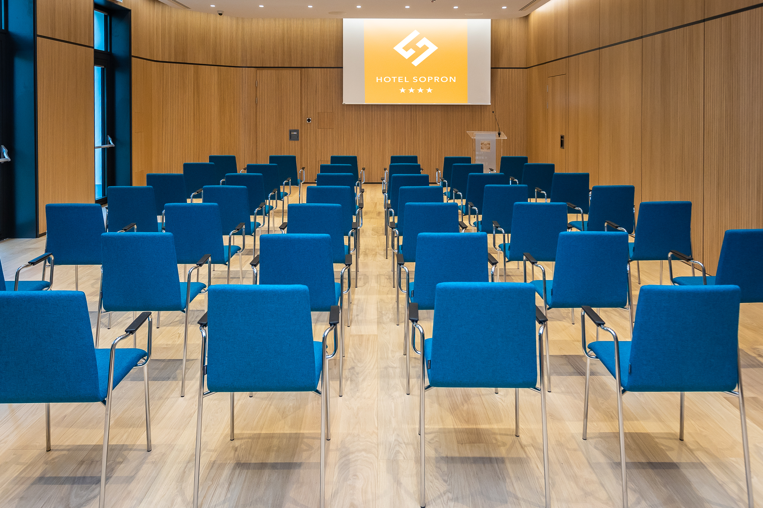 Természetes megvilágítású, klimatizált, modern technikával felszerelt, válaszfallal tagolható konferenciaterem, továbbá több kisebb tárgyalóterem áll rendelkezésre konferenciák, szekcióülések, szemináriumok, továbbképzések és egyéb rendezvények szervezéséhez.