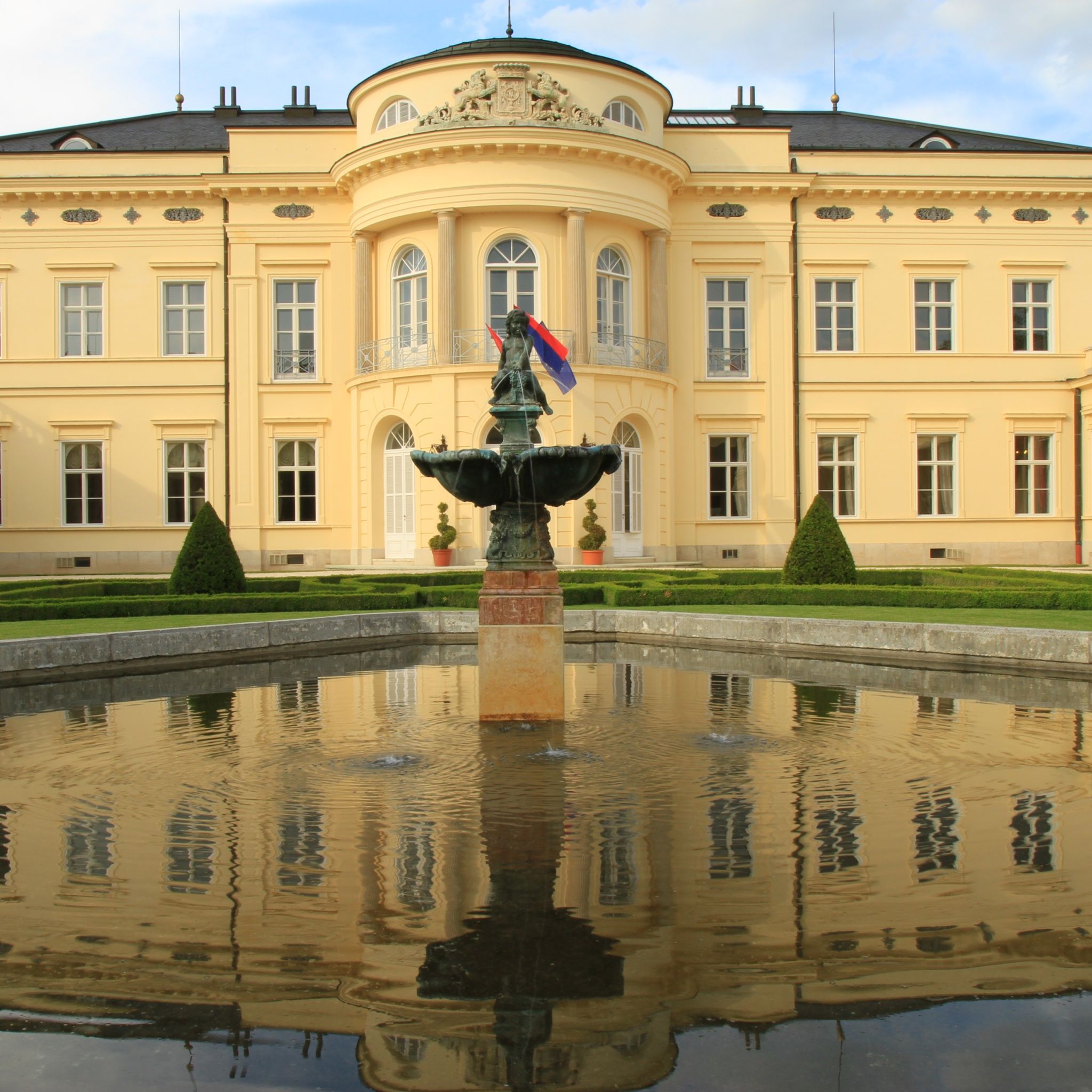 The Károlyi Chateau is situated in the village of Fehérvárcsurgó, in the west of Hungary, off the RN81, some 80 kilometres from the centre of Budapest, 110 kilometres from the Liszt Ferenc international airport and 120 kilometres from the Austrian border. 60 kilometres from Lake Balaton, it is set in gently rolling countryside, close to the beautiful baroque town of Székesfehérvár where in former times Kings of Hungary were crowned.